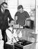 Members of SD 72 with new equipment. Left to right: Edith Gulland, primary supervisor; Brian Johnston, CR Junior Secondary School principal; Geoff Goodship, head of Resource Centre; Ron Leversage, Pinecrest Elementary School principal; and James Logie, District 72 superintendent.