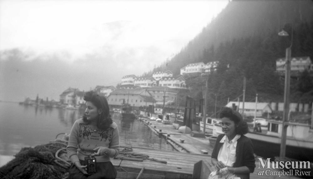 Ocean Falls was a mill town and an important supply stop for the commercial fishing fleet on the central coast. A one store company town with no road access, the arrival of the fishing fleet meant empty shelves until the next boat. For fishermen it meant some welcome shore time. The woman on the left in this photograph is Mercy Brown.