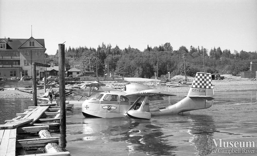 B.C. Airlines seaplane approaching the dock in the front of the third Willows Hotel.