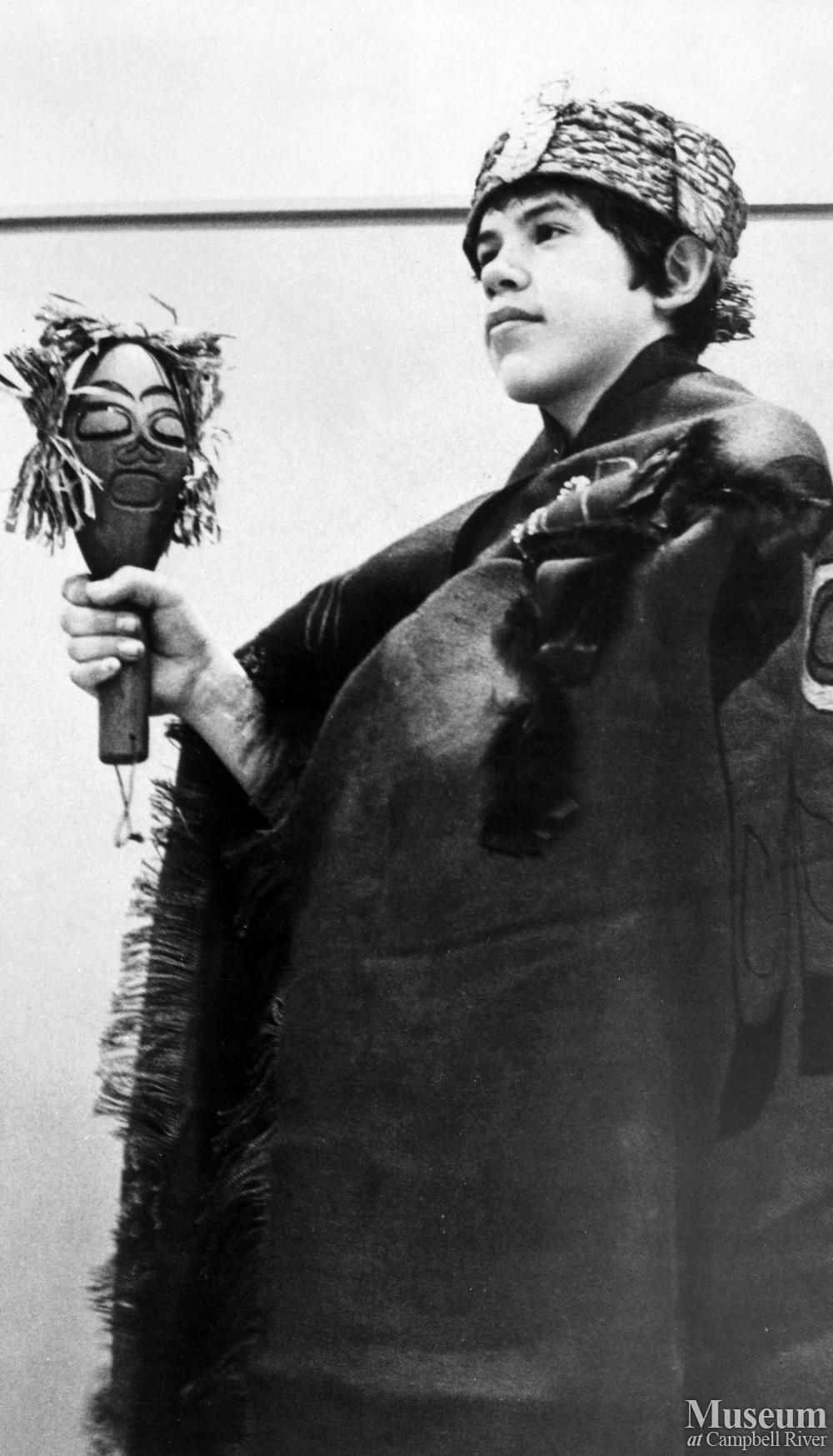 The dedication ceremony of a Sam Henderson pole to Peter Smith at the Peter Smith memorial. Peter Smith was a former Chief of Alert Bay.