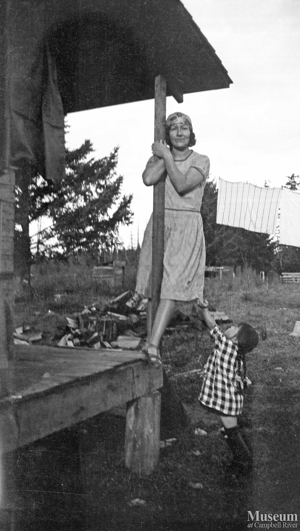 Like a scene from a Norman Rockwell painting, Katie Ferry indulges in a momentary daydream while a determined little one attempts to bring her back to earth.