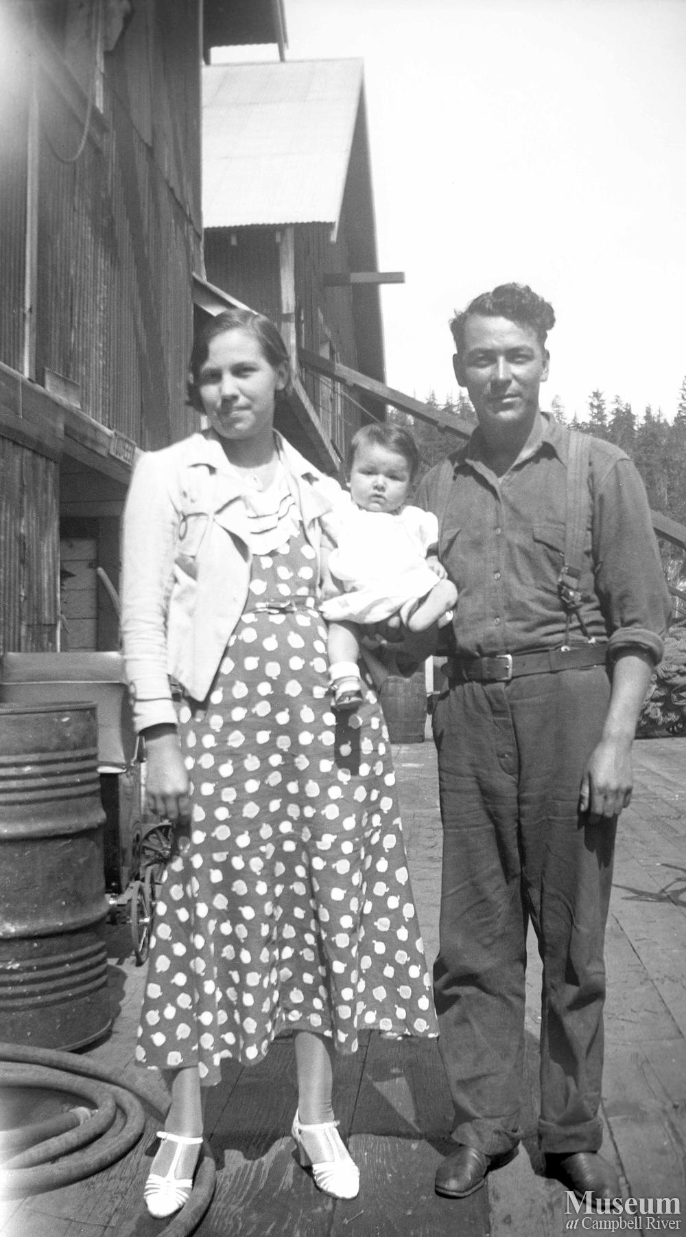 Sam was the son of Kenneth Henderson, a Scottish engineer who came to Canada in 1880 and married Lucy Johnson, a high ranking Nakwaktok woman. Although the family had a homestead on Denman Island, the children spent much of their childhood with their mother’s relatives, living in Kwakwaka’wakw communities around Blunden Harbour and Alert Bay. As a young man Sam visited Campbell River where May, the daughter of Chief John Quocksister, caught his eye. They married in 1934 and settled in Campbell River. Together they raised 16 children.