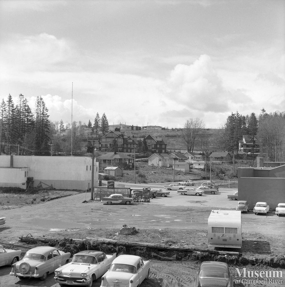 View looking west towards Alder Street, the Lourdes Hospital is the large building on the hill. Buidling on the hill on top right is the Sister of St. Ann's residences, known as Floracita Cottage.