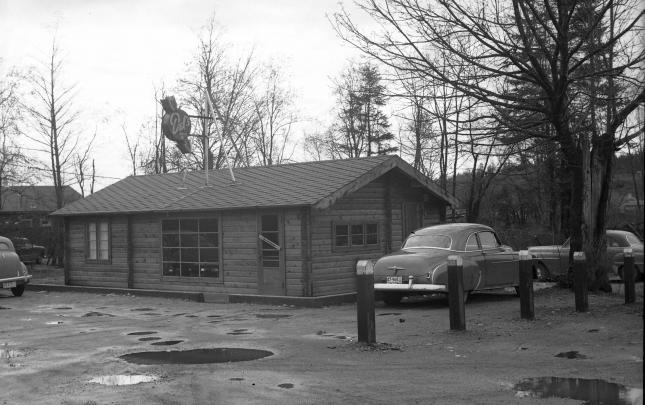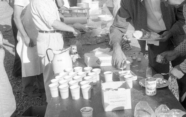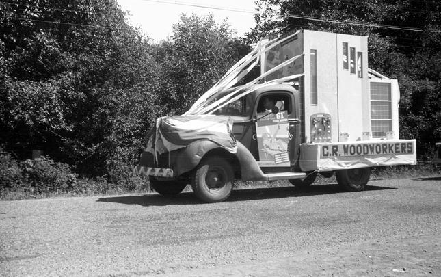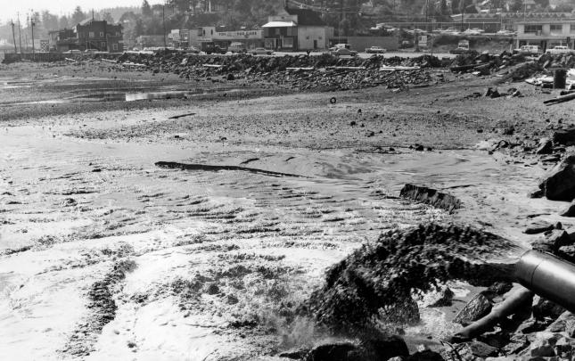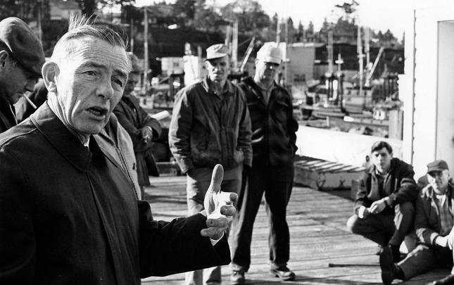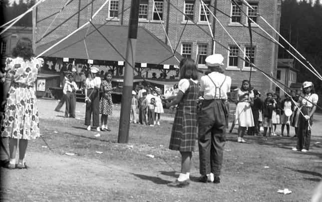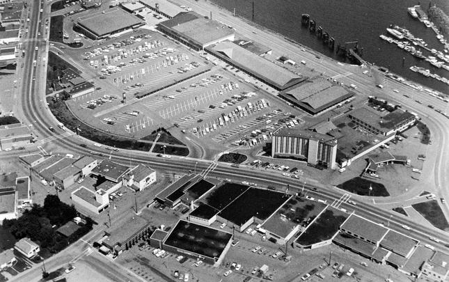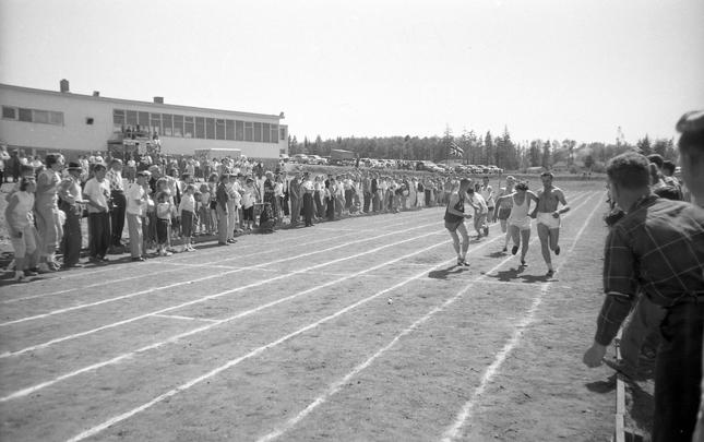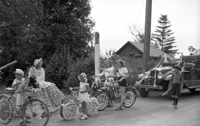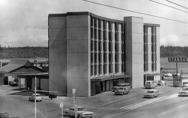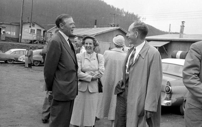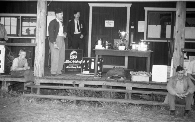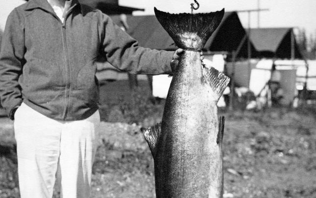 Seen in this photograph: McDonald Road in the foreground, on beach in front is the Tyee Camp - originally built by Vanstone Sr. - boat shed at the curve in the road, McDonald house on the beach above McDonald Road, above which is Painter's Lodge with wharf, and Ed Painter's old boat...