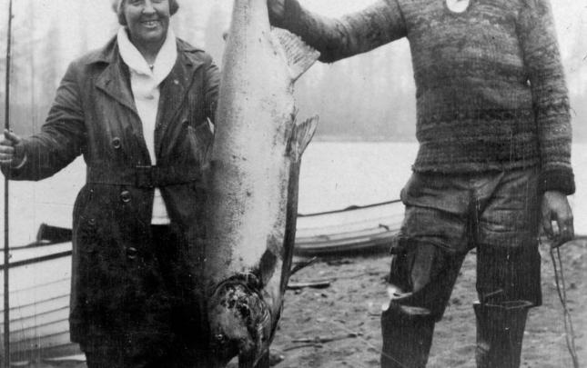 The first elected Directors of the Tyee Club of British Columbia. From Left: Melville Haigh, Campbell River; Walter P. Miller, Seattle, WA; A.N. Wolverton, Vancouver, B.C.; Dr. J. A. Wiborn, Avalon, California; and Sir John Asser, Governor of Bermuda.