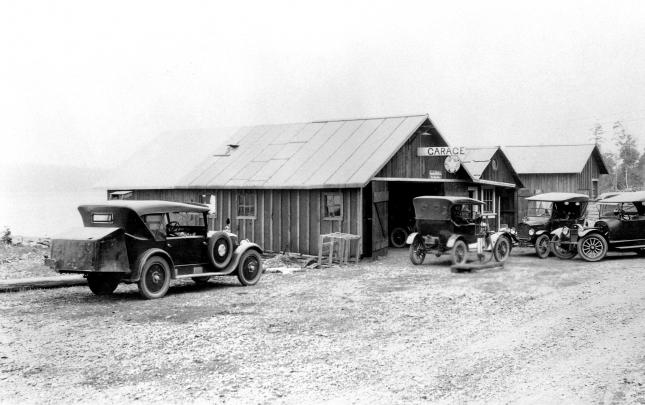 Campbell River's first garage was located on the Island Highway, south of the Big Store, and was operated by Oscar and Agnes Thulin, and Agnes's brother Einar Andersen.