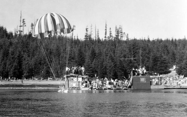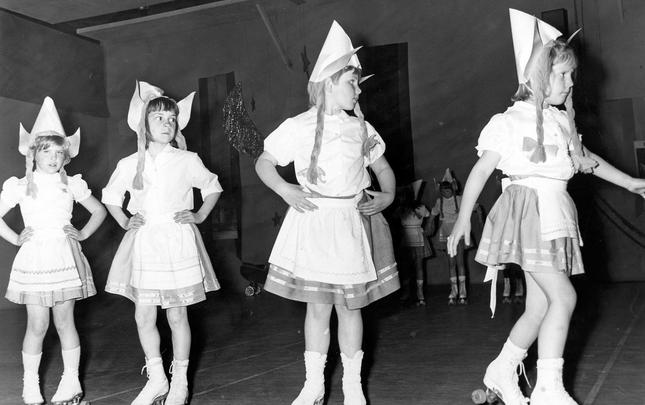 Group of children at a roller skating performance. This group was likely part of the Campbell River Roller Skating Club. Photo ran in the May 14, 1964 issue of the C.R. Courier newspaper.