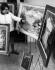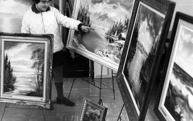 Kelly-Anne Golicz (age 9) admires Thema Stobie's landscape paintings on display at Ray's Paint Store. The store had a display of three Campbell River artists.