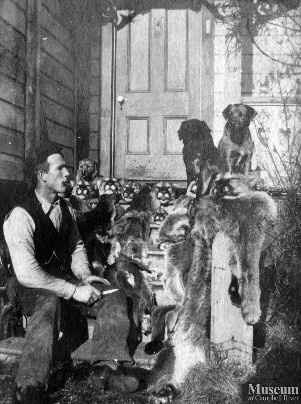 Cecil Smith with several dead cougars.