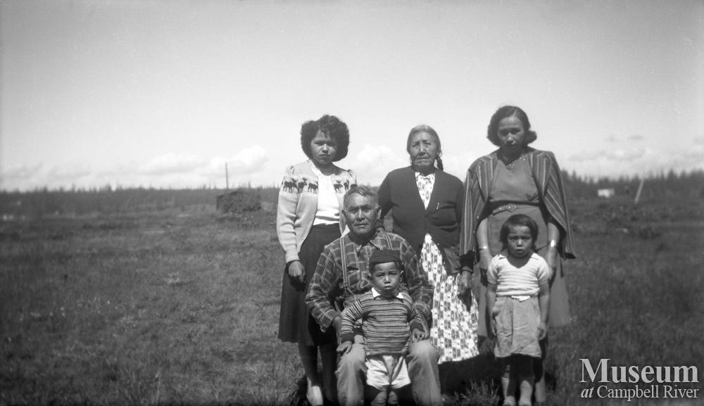 Front row: Moses Cliffe with his son and daughter. Back row left to right: Anne Munday, Molly Whale and Eleanor Cliffe (née Wilson). Molly Whale (born 1875) was Eleanor’s aunt. She and her first husband, Joe Munday of Salmon River, adopted Anne Munday. Joe Munday passed away and Molly married Peter Whale.