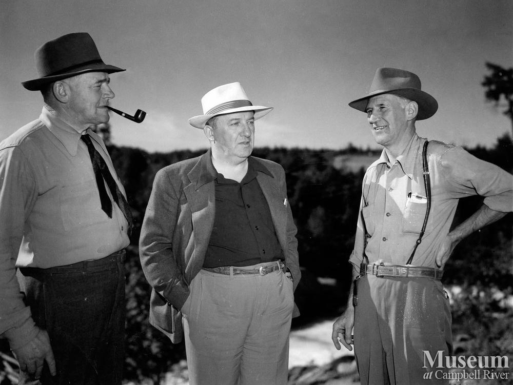 Left to right: Mr. Boyd, owner of General Construction Co. Ltd.; Earl Finning, of Finning Tractor & Equipment Co. Ltd.; and Frank Ferries, the Branch Service Manager of Finning.