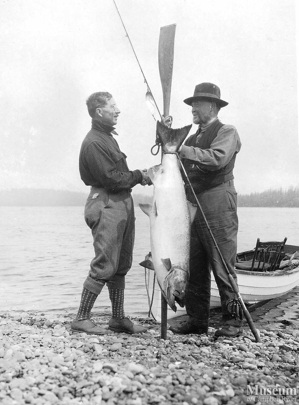 Founding member of the Tyee Club of British Columbia, Dr. Wiborn, congratulating fisherman and US senator (WA) William E. Humphrey.