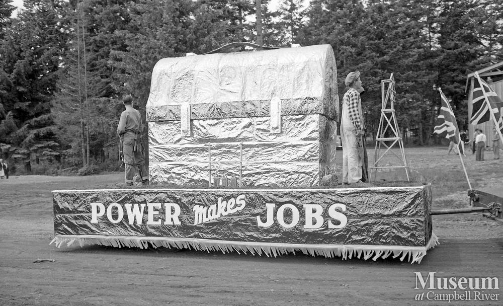 Likely a float entered by the B.C. Power Commission in the July 1st parade, 1953.