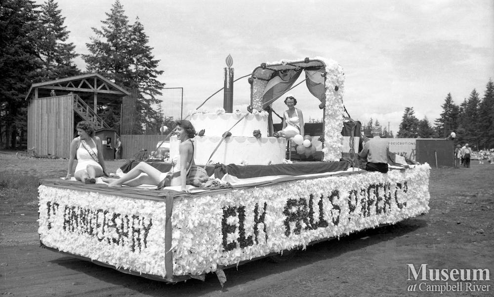 The Elk Falls Paper Co. float in the July 1st parade. The company celebrates its one-year anniversary being in operation.