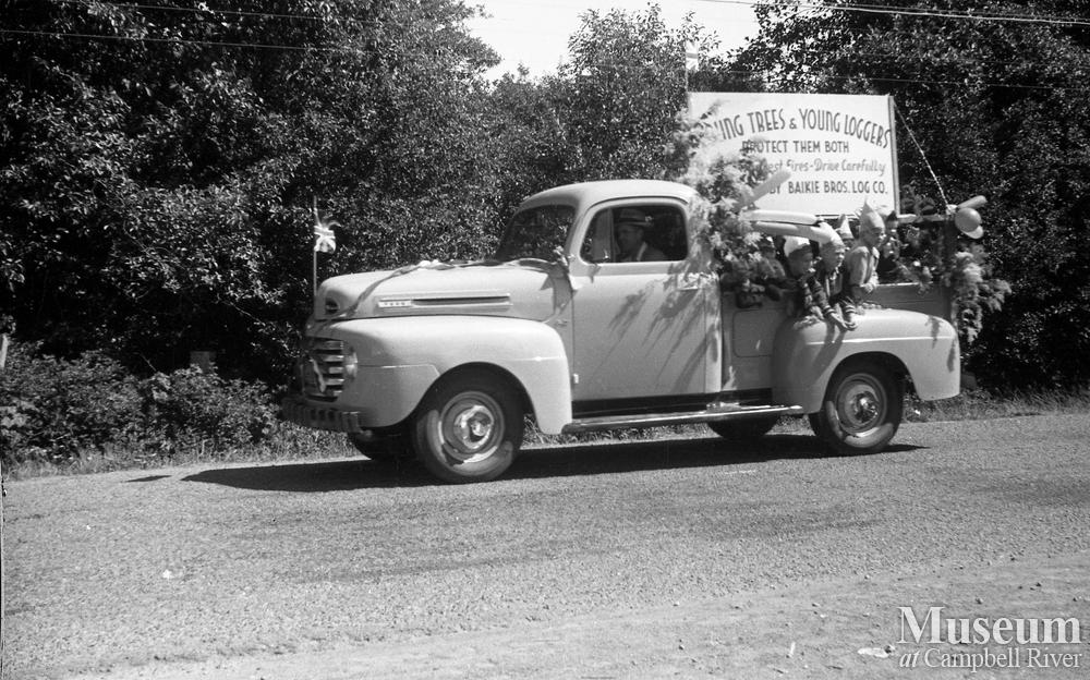Baikie Bros. Log. Co. entry in the July 1st parade at Campbell River.