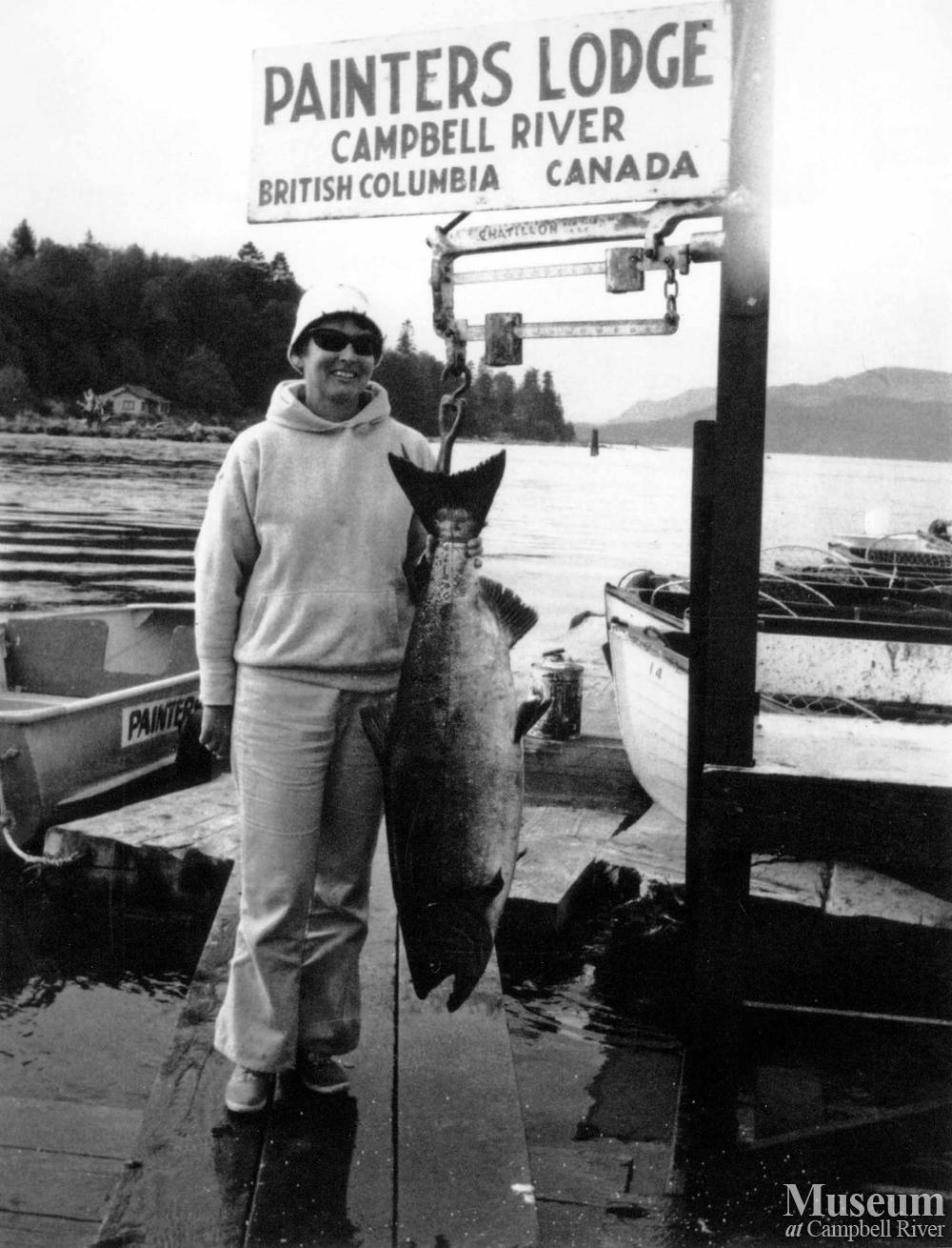 Mrs. Bob Hammond with her catch - a 43½ lb Tyee caught on August 17, 1970.