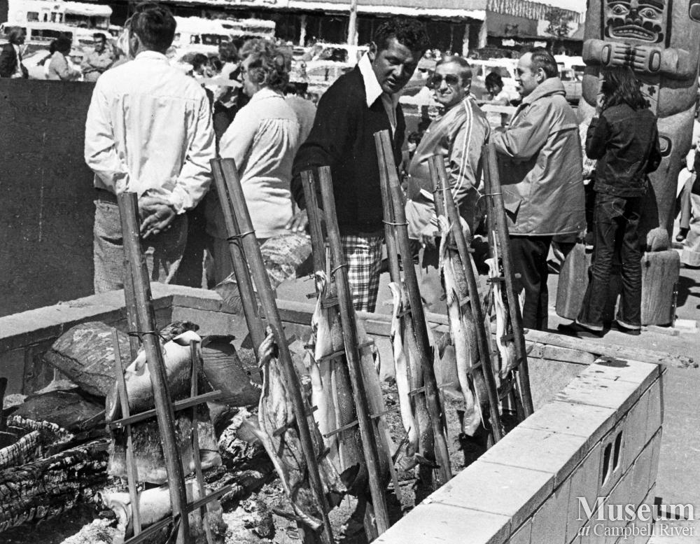 A salmon barbeque at the Tyee Plaza in honour of Peter Smith.