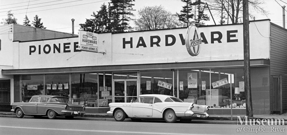 The Pioneer Hardware store, October 1966. The store was owned and operated by the Thulin family. It was opened in 1937 by Carl and Margaret Thulin.