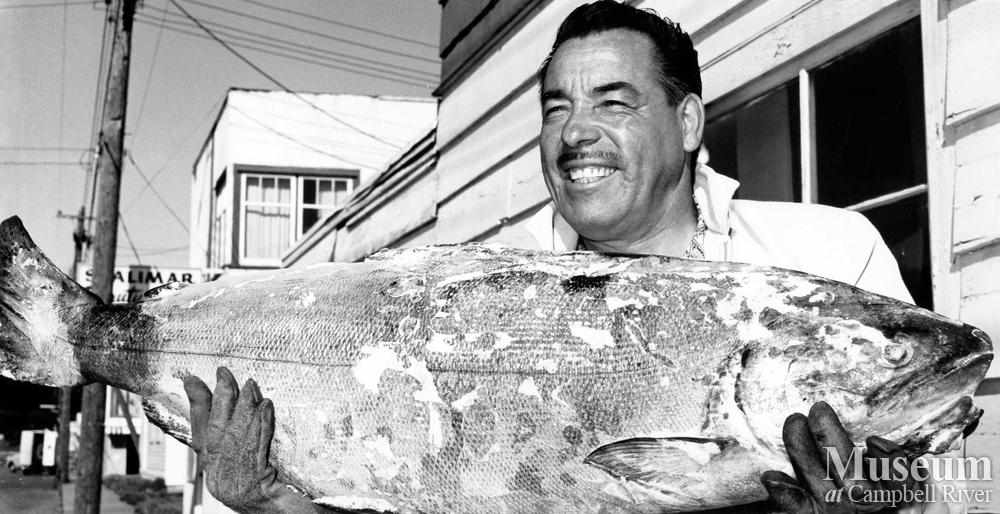 Tony Biron caught a 47 lb spawning Tyee from the end of the Argonaut Wharf. Featured in the Aug. 12, 1964 issue of the newspaper.